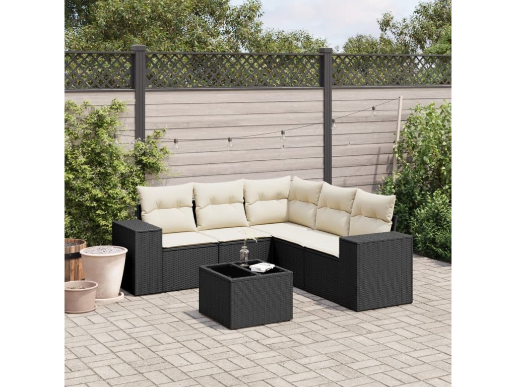 6dílná zahradní sedací souprava s poduškami černá polyratan 3222555
