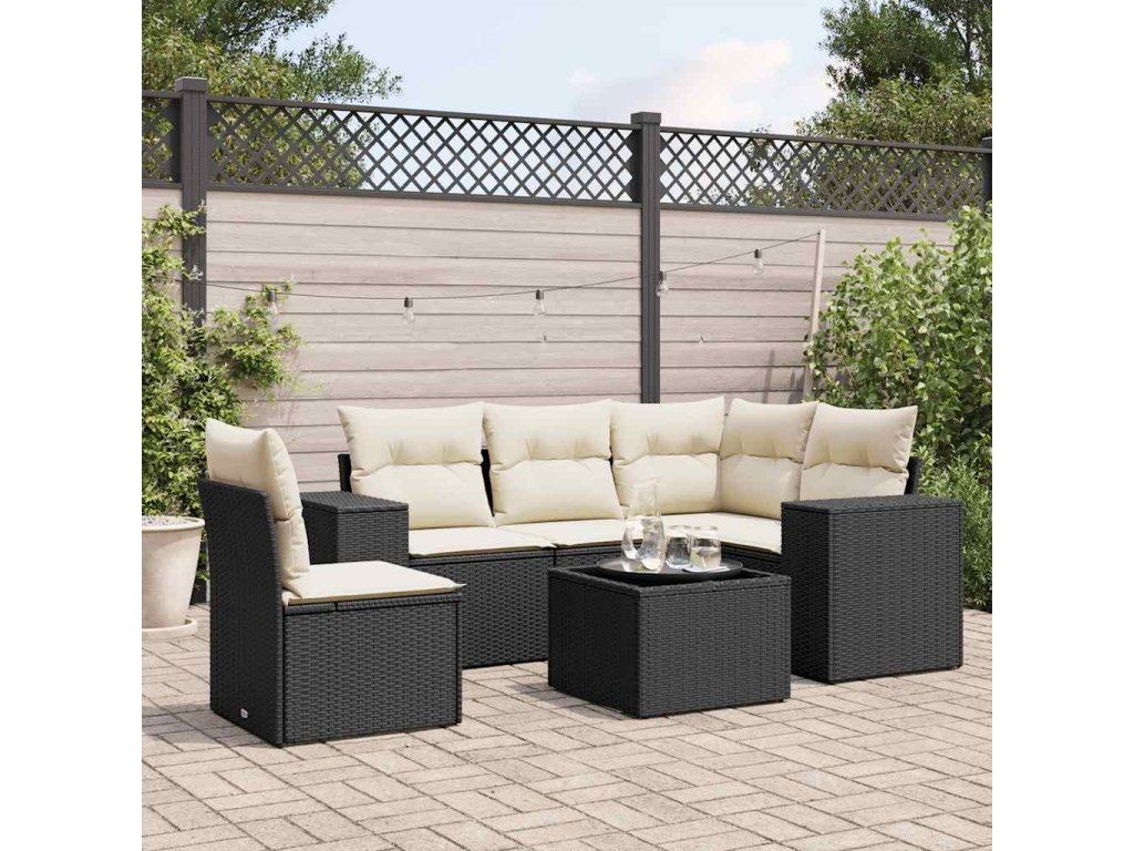6dílná zahradní sedací souprava s poduškami černá polyratan 3222585