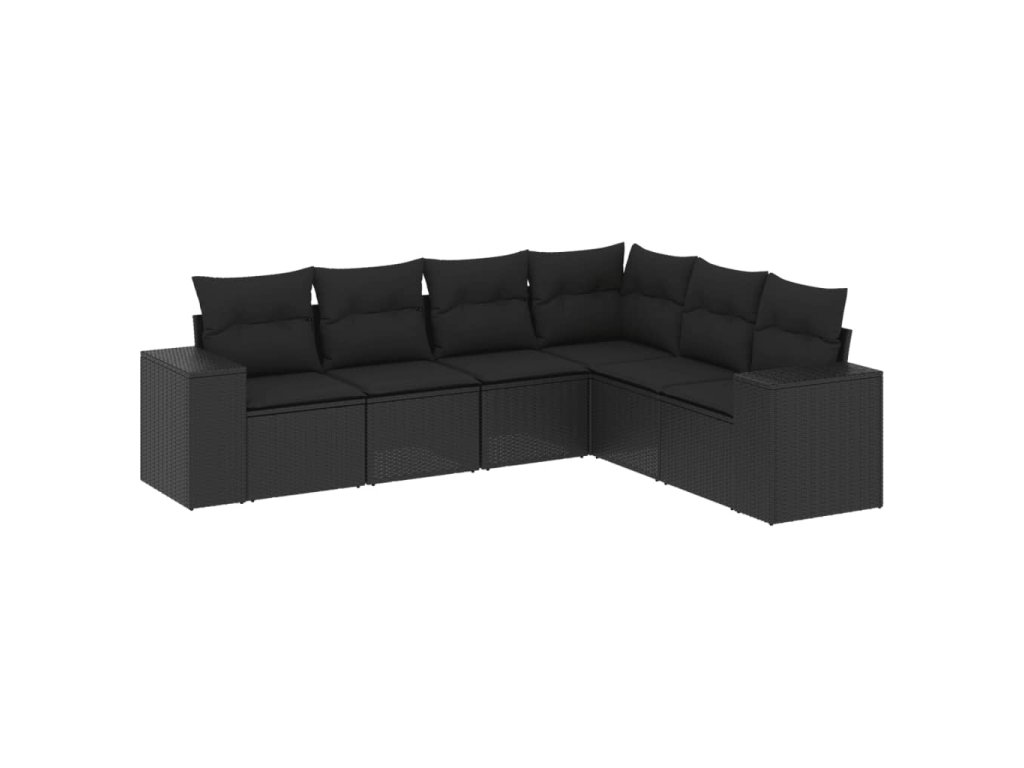 6dílná zahradní sedací souprava s poduškami černá polyratan 3222604