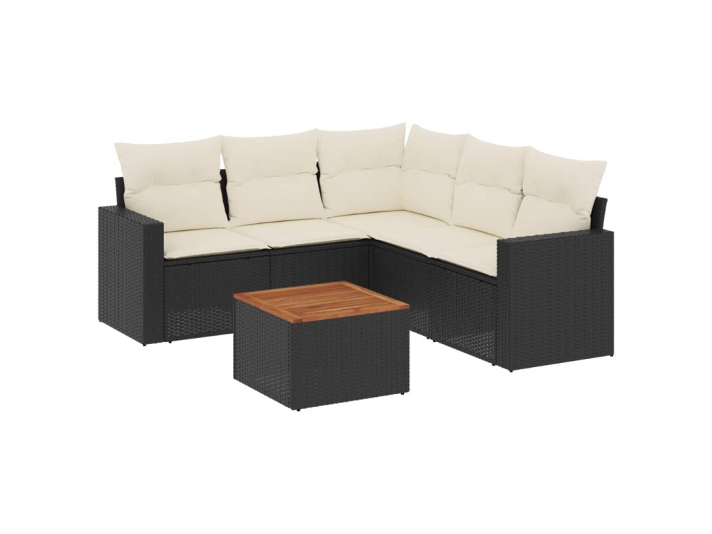 6dílná zahradní sedací souprava s poduškami černá polyratan 3224117