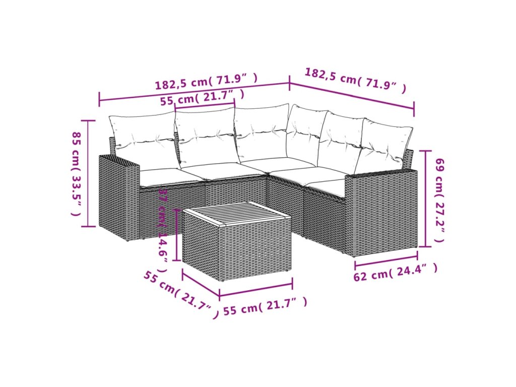 Tato zahradní sedací souprava je dokonalým doplňkem vaší zahrady, terasy nebo dvorku a poskytne vám pohodlné a příjemné místo, kde si můžete povídat s rodinou a přáteli nebo jen tak odpočívat a užívat si pobyt venku.