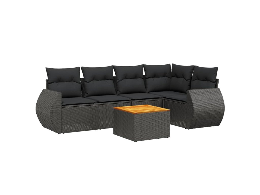 6dílná zahradní sedací souprava s poduškami černá polyratan 3224991