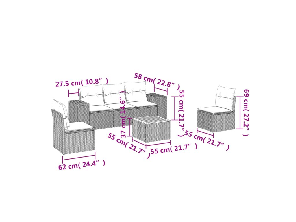 Tato zahradní sedací souprava je dokonalým doplňkem vaší zahrady, terasy nebo dvorku a poskytne vám pohodlné a příjemné místo, kde si můžete povídat s rodinou a přáteli nebo jen tak odpočívat a užívat si pobyt venku.