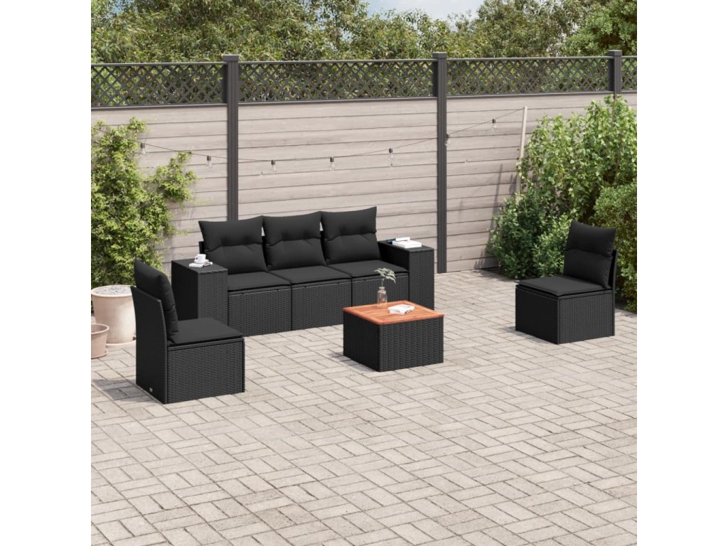6dílná zahradní sedací souprava s poduškami černá polyratan 3225383