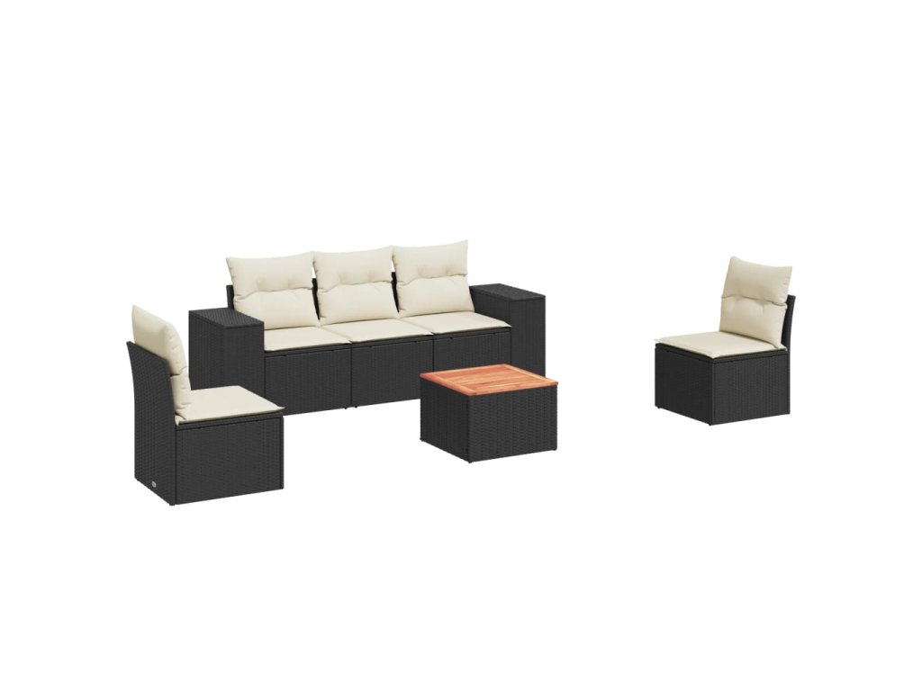 6dílná zahradní sedací souprava s poduškami černá polyratan 3225384