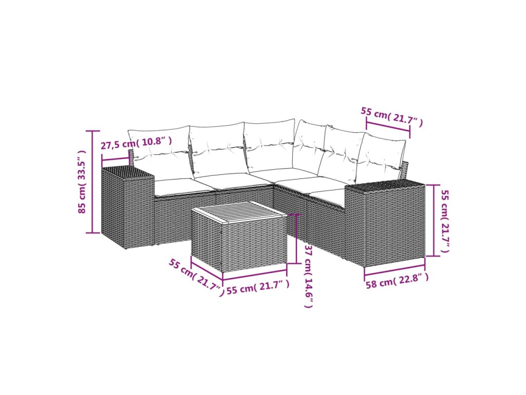 6dílná zahradní sedací souprava s poduškami černá polyratan 3225439