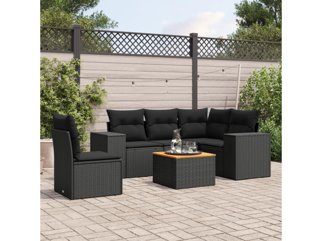 6dílná zahradní sedací souprava s poduškami černá polyratan 3225446
