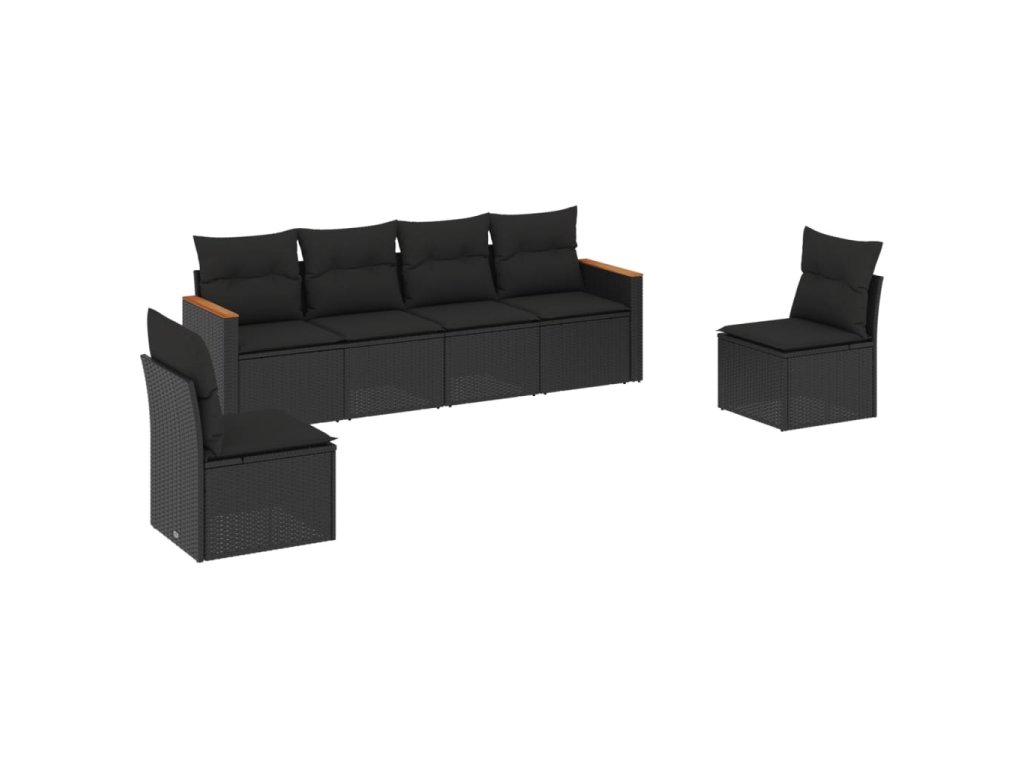 6dílná zahradní sedací souprava s poduškami černá polyratan 3225859