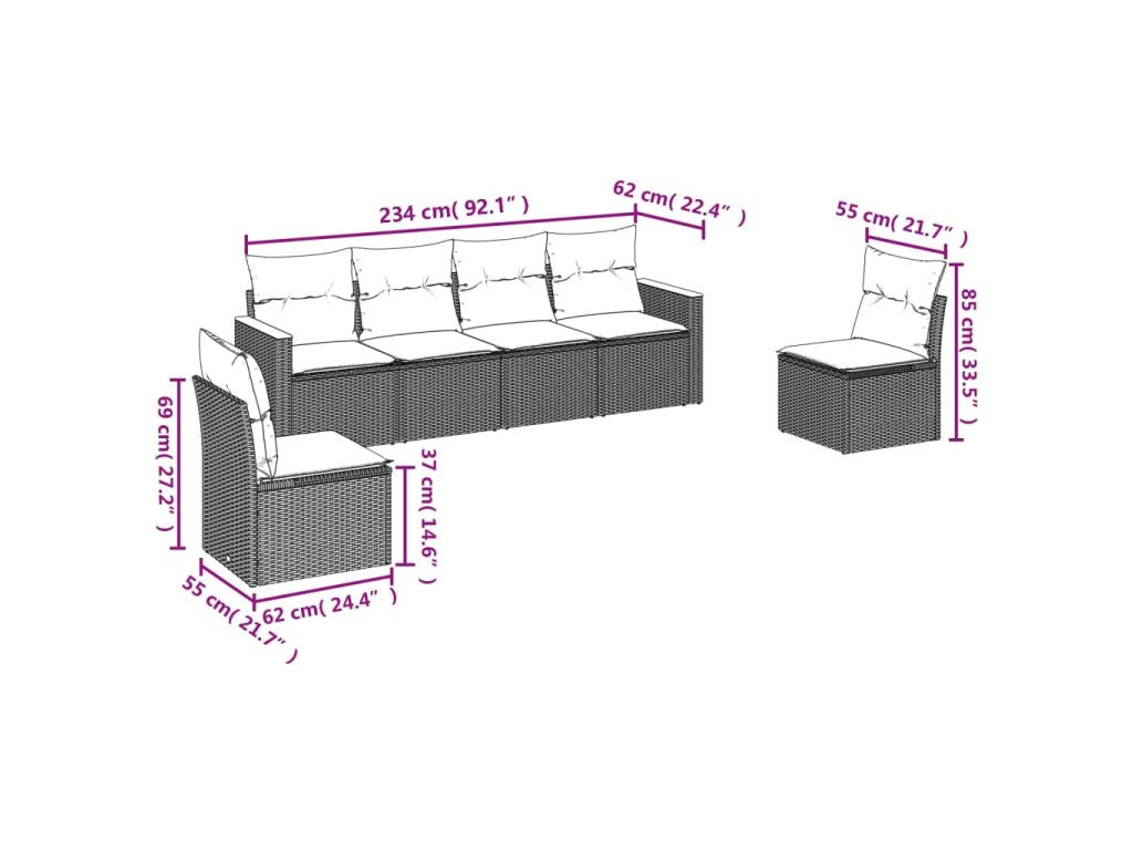 Tato zahradní sedací souprava je dokonalým doplňkem vaší zahrady, terasy nebo dvorku a poskytne vám pohodlné a příjemné místo, kde si můžete povídat s rodinou a přáteli nebo jen tak odpočívat a užívat si pobyt venku.