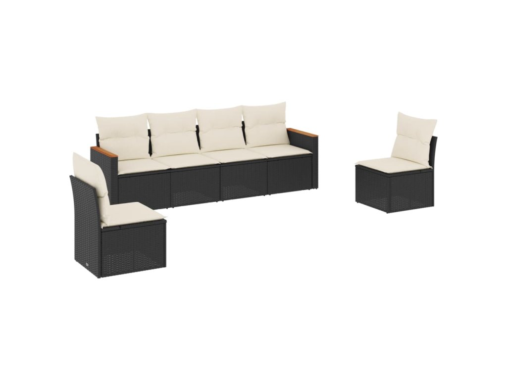 6dílná zahradní sedací souprava s poduškami černá polyratan 3225860