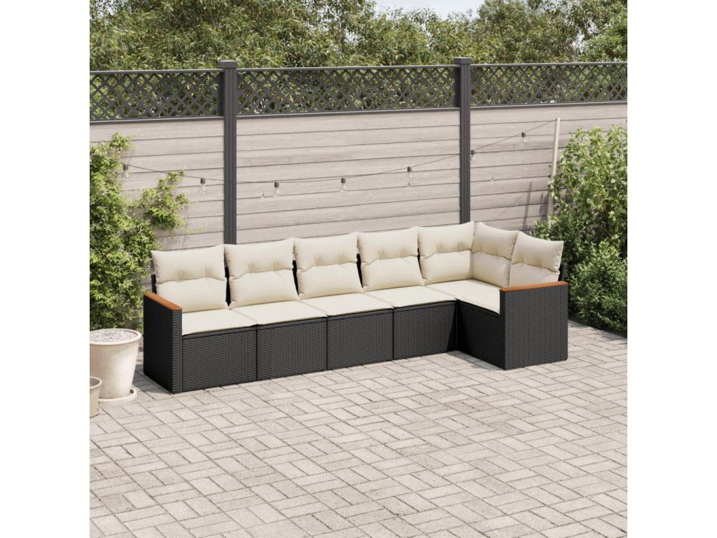 6dílná zahradní sedací souprava s poduškami černá polyratan 3225986