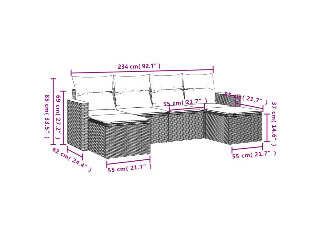 Tato zahradní sedací souprava je dokonalým doplňkem vaší zahrady, terasy nebo dvorku a poskytne vám pohodlné a příjemné místo, kde si můžete povídat s rodinou a přáteli nebo jen tak odpočívat a užívat si pobyt venku.