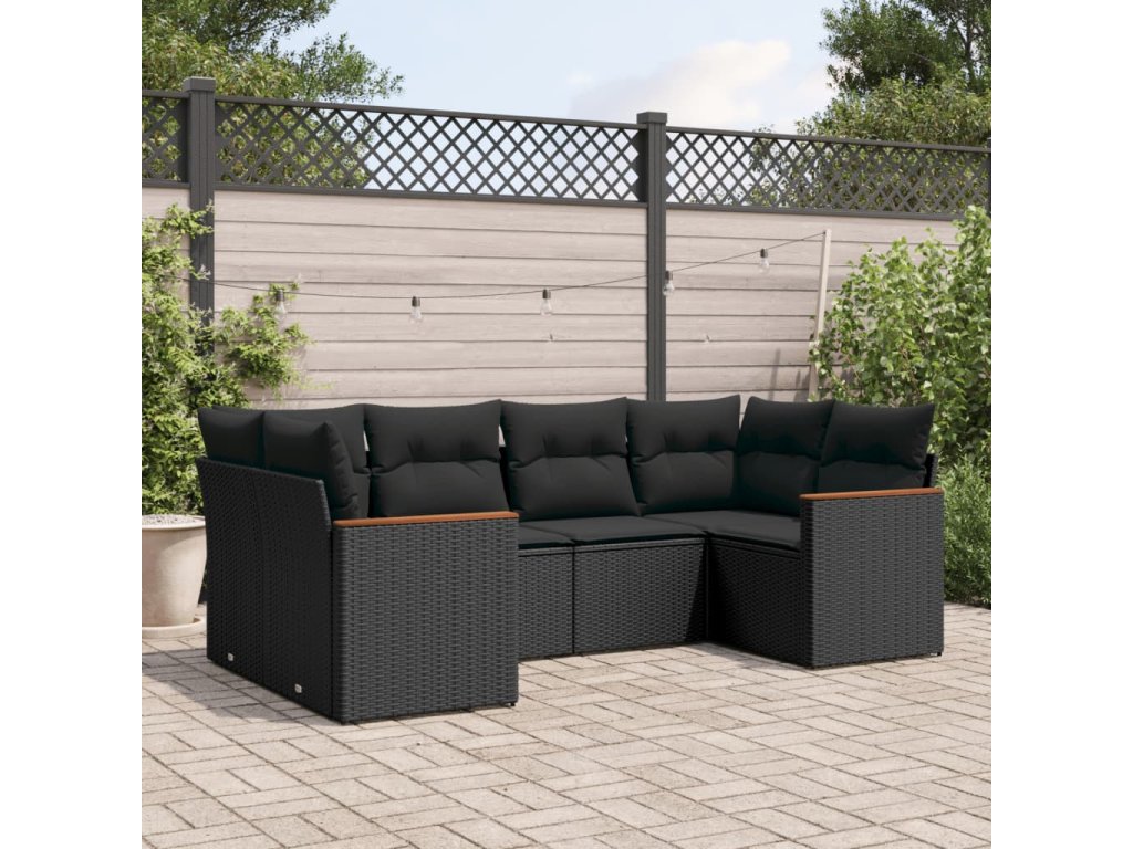 6dílná zahradní sedací souprava s poduškami černá polyratan 3226258
