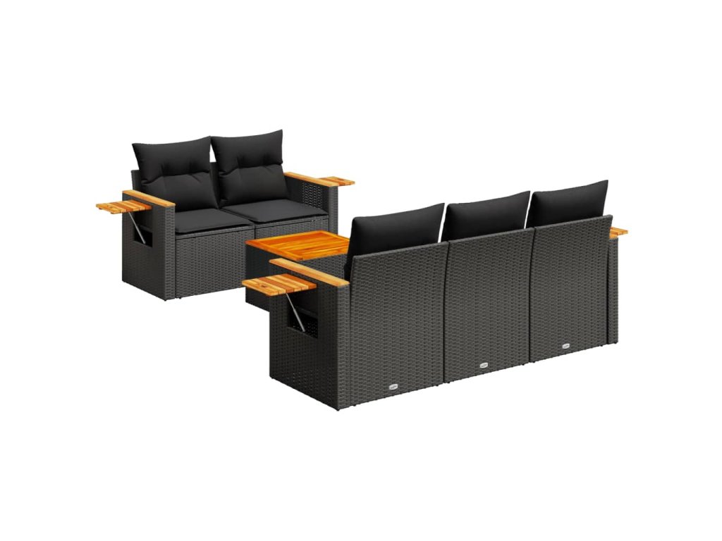 6dílná zahradní sedací souprava s poduškami černá polyratan 3226622