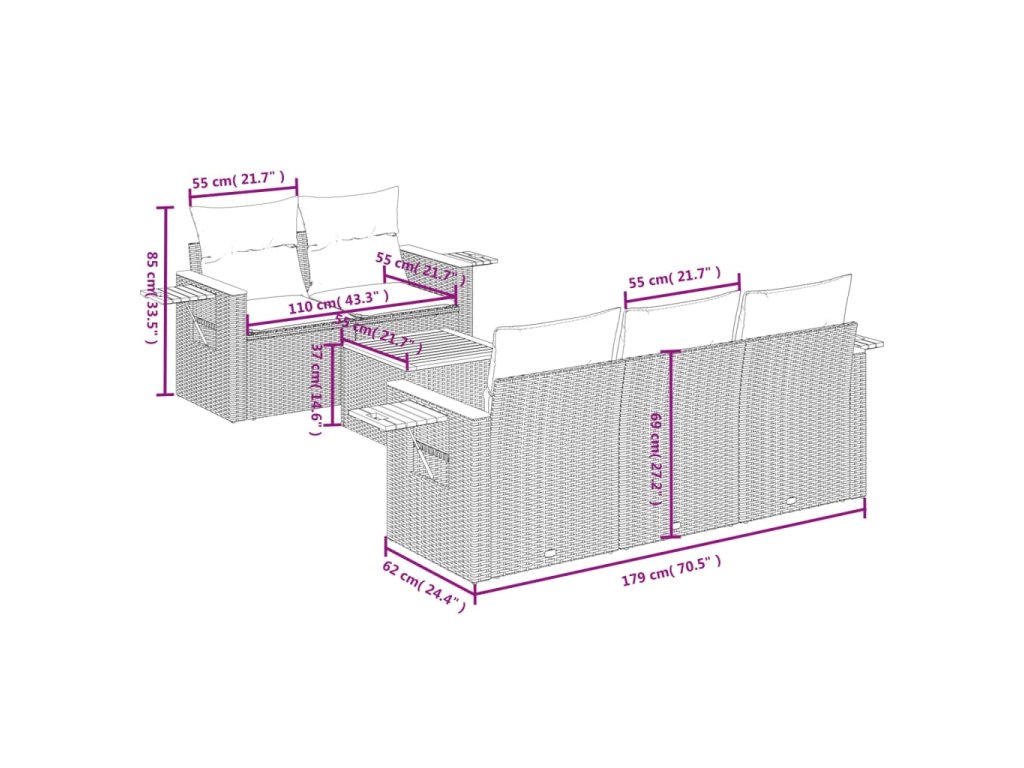 Tato zahradní sedací souprava je dokonalým doplňkem vaší zahrady, terasy nebo dvorku a poskytne vám pohodlné a příjemné místo, kde si můžete povídat s rodinou a přáteli nebo jen tak odpočívat a užívat si pobyt venku.