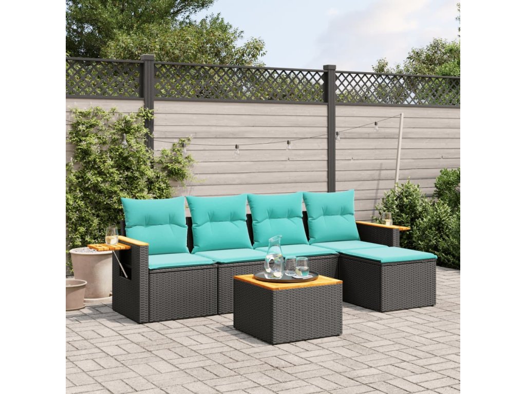 6dílná zahradní sedací souprava s poduškami černá polyratan 3226764