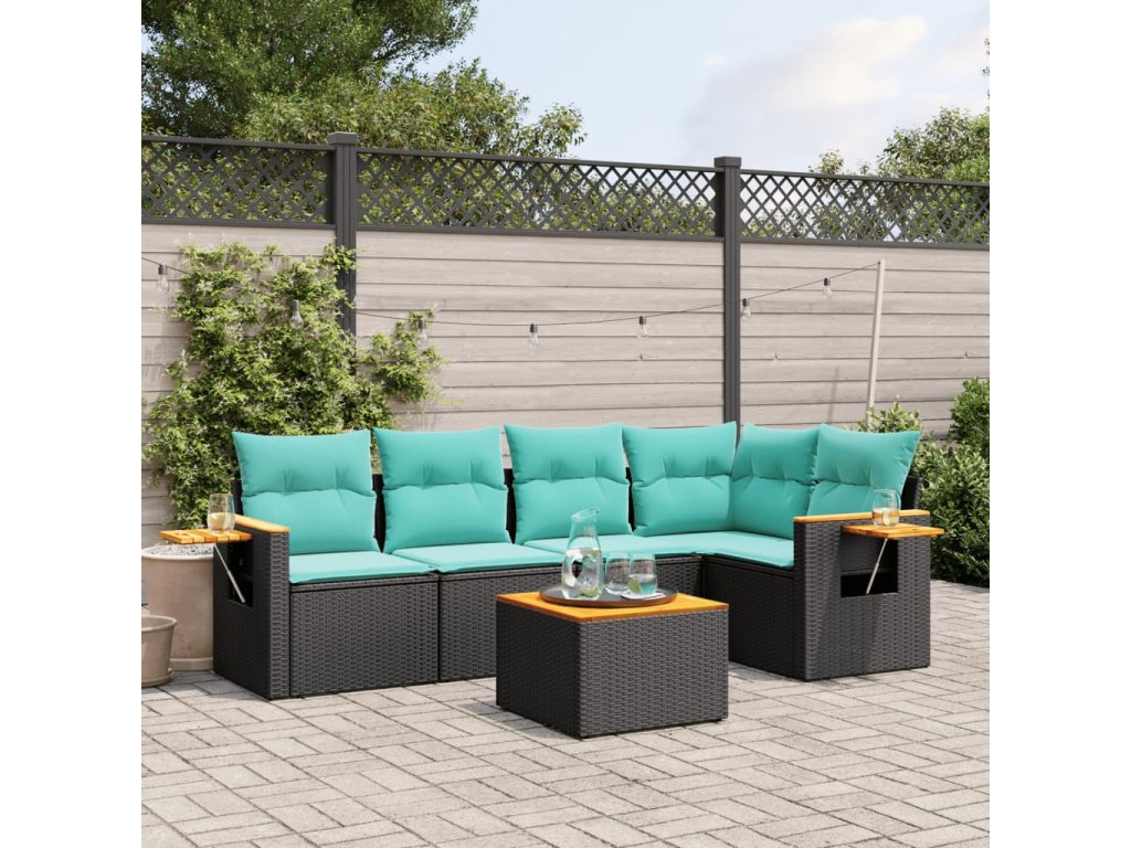 6dílná zahradní sedací souprava s poduškami černá polyratan 3226792