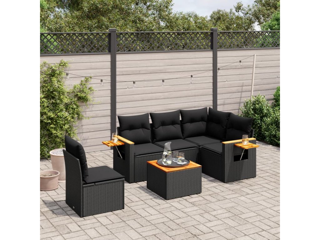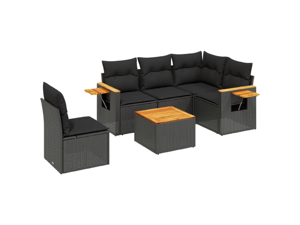 6dílná zahradní sedací souprava s poduškami černá polyratan 3226818