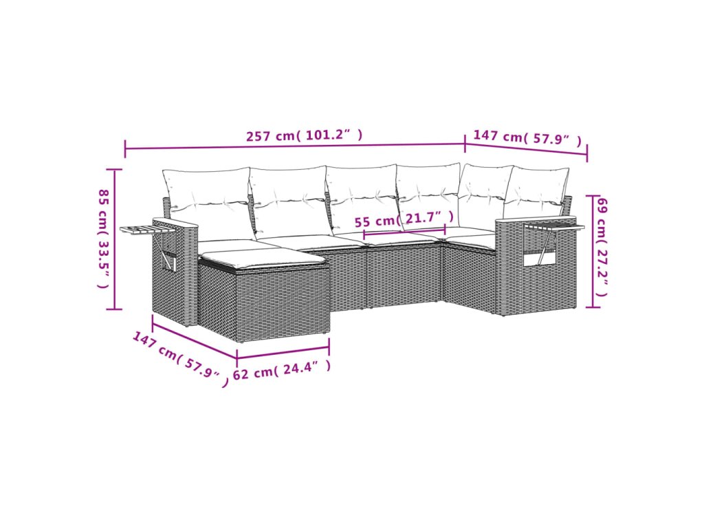 Tato zahradní sedací souprava je dokonalým doplňkem vaší zahrady, terasy nebo dvorku a poskytne vám pohodlné a příjemné místo, kde si můžete povídat s rodinou a přáteli nebo jen tak odpočívat a užívat si pobyt venku.
