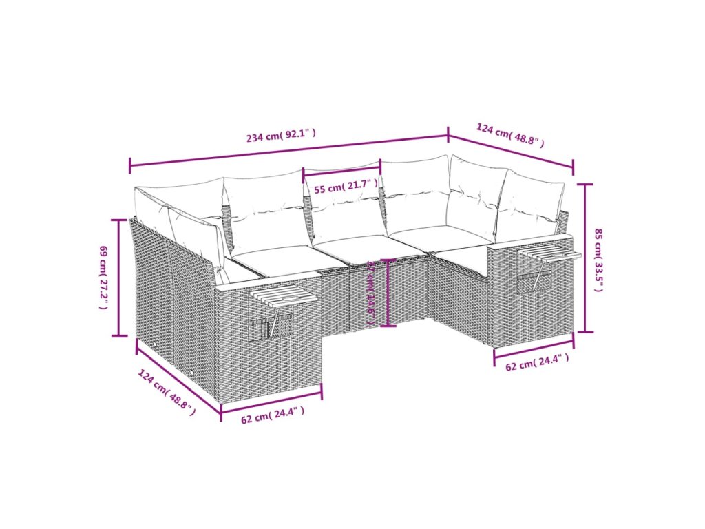 Tato zahradní sedací souprava je dokonalým doplňkem vaší zahrady, terasy nebo dvorku a poskytne vám pohodlné a příjemné místo, kde si můžete povídat s rodinou a přáteli nebo jen tak odpočívat a užívat si pobyt venku.