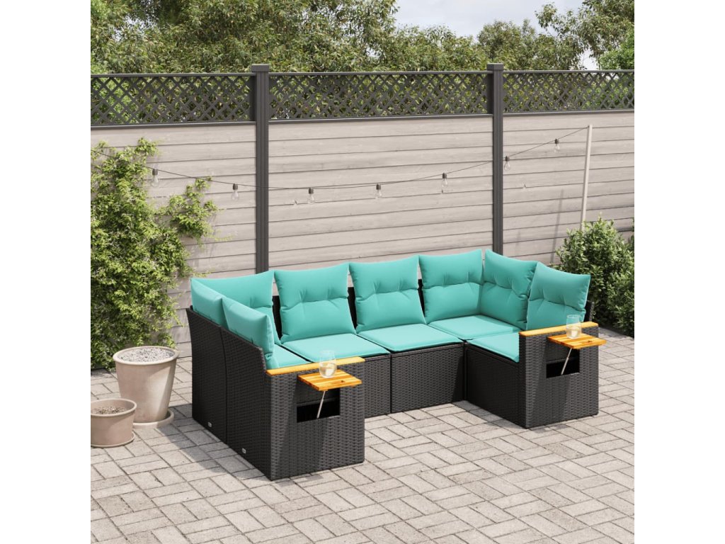 6dílná zahradní sedací souprava s poduškami černá polyratan 3227100