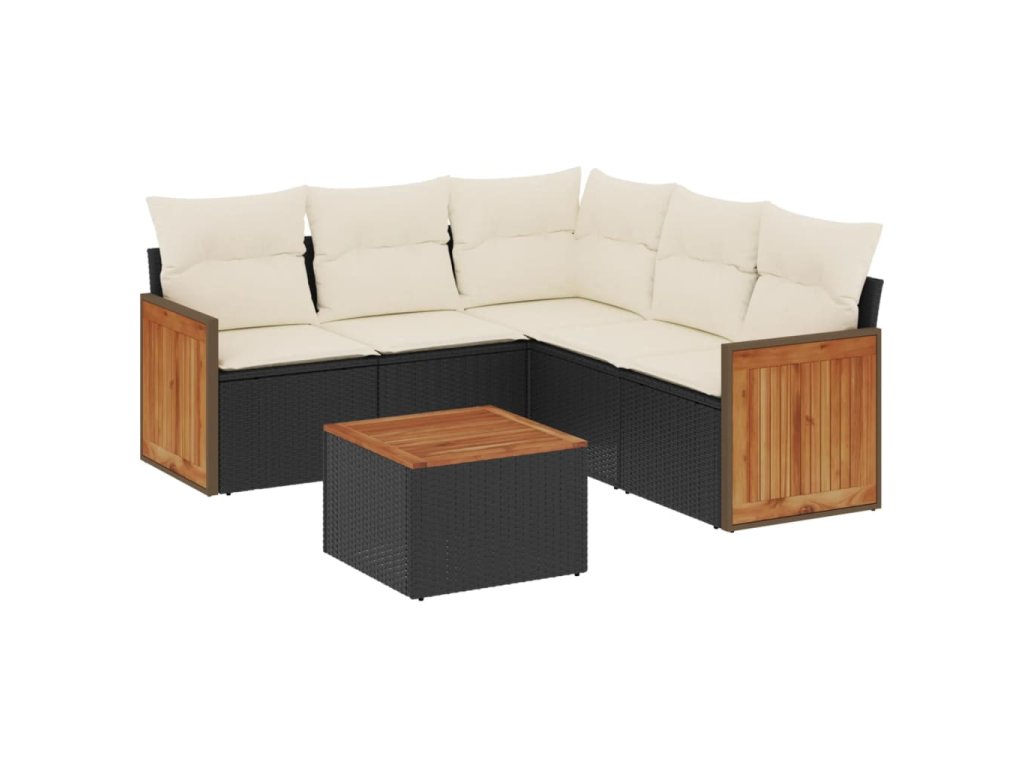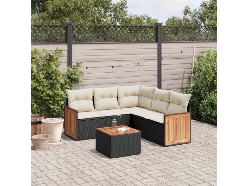 6dílná zahradní sedací souprava s poduškami černá polyratan 3227645