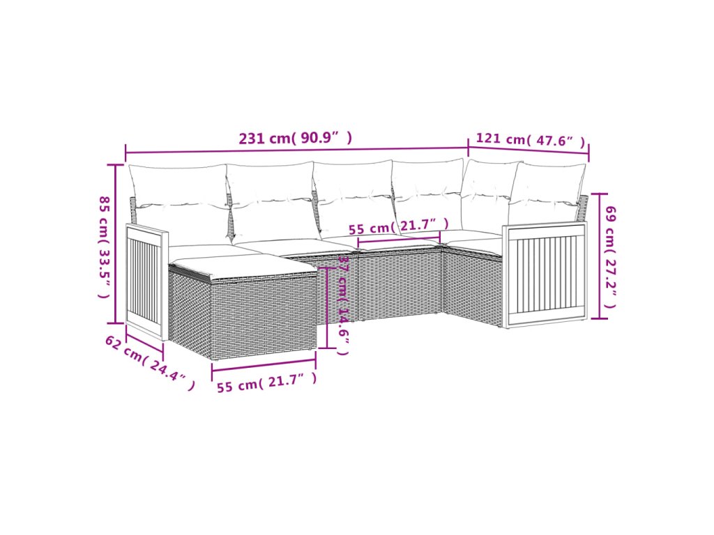 Tato zahradní sedací souprava je dokonalým doplňkem vaší zahrady, terasy nebo dvorku a poskytne vám pohodlné a příjemné místo, kde si můžete povídat s rodinou a přáteli nebo jen tak odpočívat a užívat si pobyt venku.