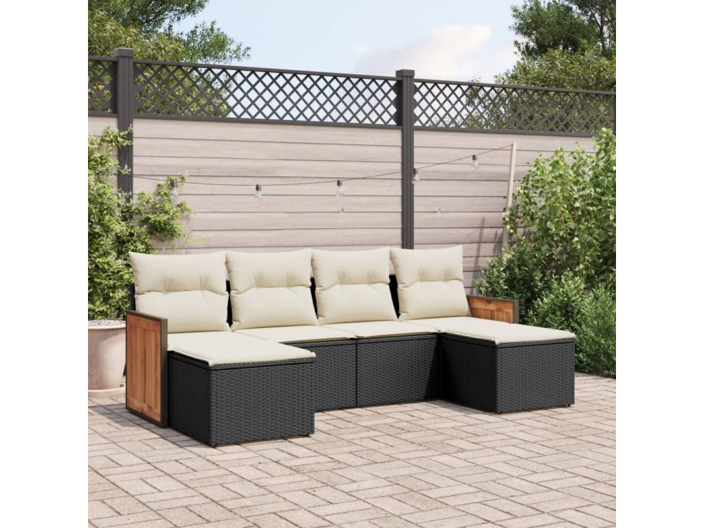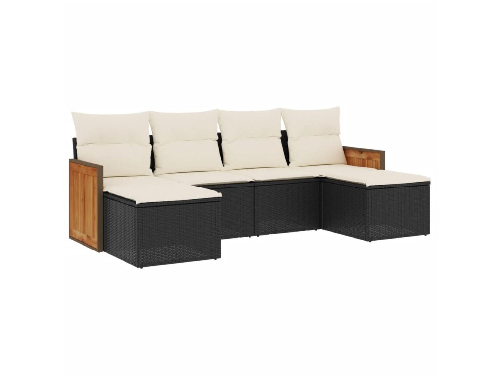 6dílná zahradní sedací souprava s poduškami černá polyratan 3227897