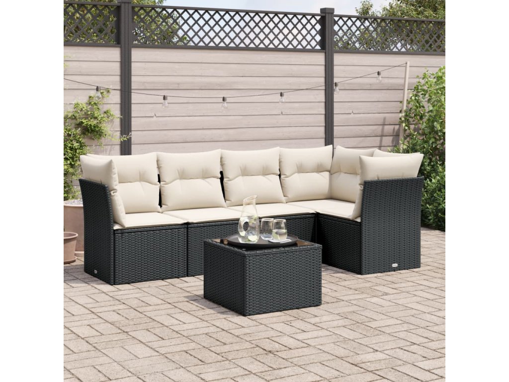 6dílná zahradní sedací souprava s poduškami černá polyratan 3249445