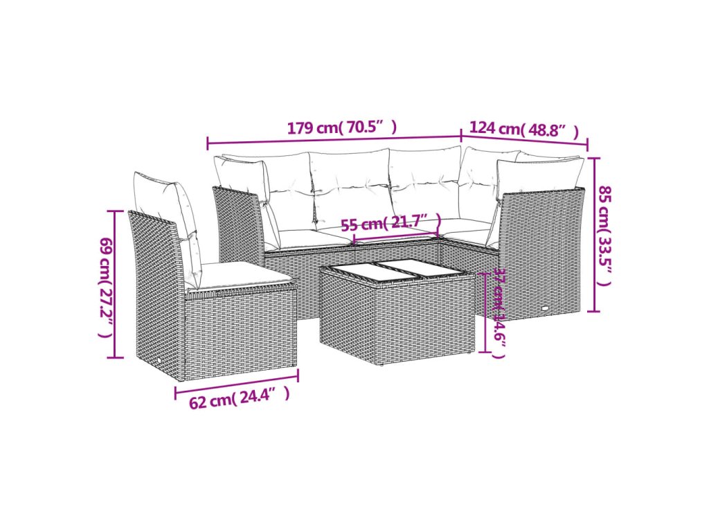 Tato zahradní sedací souprava je dokonalým doplňkem vaší zahrady, terasy nebo dvorku a poskytne vám pohodlné a příjemné místo, kde si můžete povídat s rodinou a přáteli nebo jen tak odpočívat a užívat si pobyt venku.