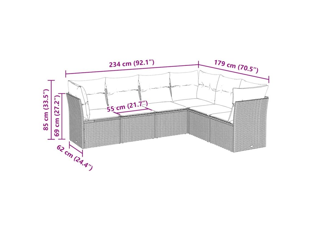 Tato zahradní sedací souprava je dokonalým doplňkem vaší zahrady, terasy nebo dvorku a poskytne vám pohodlné a příjemné místo, kde si můžete povídat s rodinou a přáteli nebo jen tak odpočívat a užívat si pobyt venku.