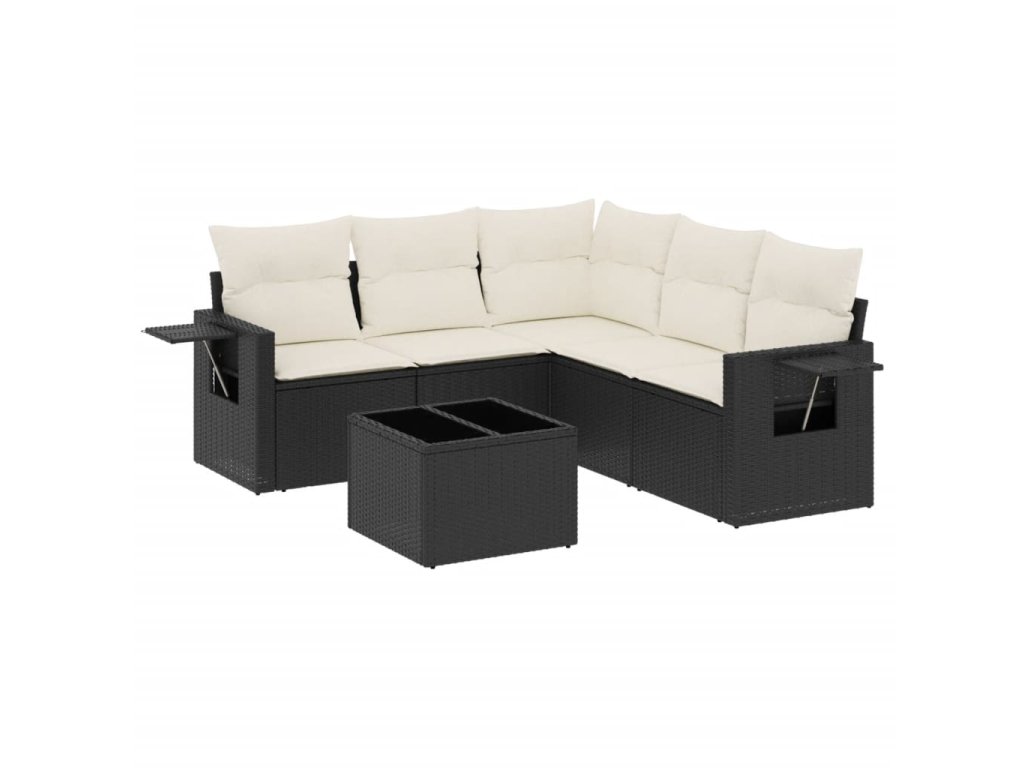 6dílná zahradní sedací souprava s poduškami černá polyratan 3252493