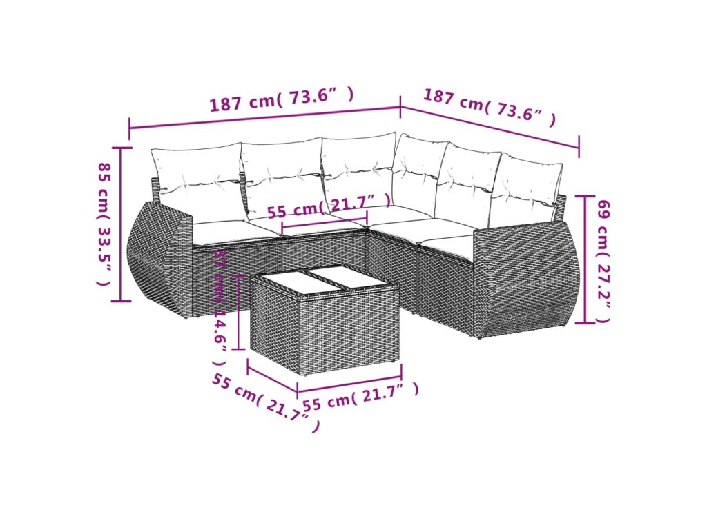 Tato zahradní sedací souprava je dokonalým doplňkem vaší zahrady, terasy nebo dvorku a poskytne vám pohodlné a příjemné místo, kde si můžete povídat s rodinou a přáteli nebo jen tak odpočívat a užívat si pobyt venku.