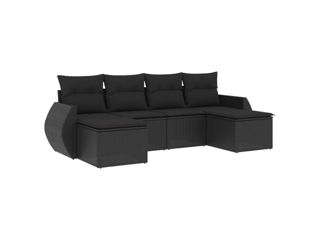 6dílná zahradní sedací souprava s poduškami černá polyratan 3254052