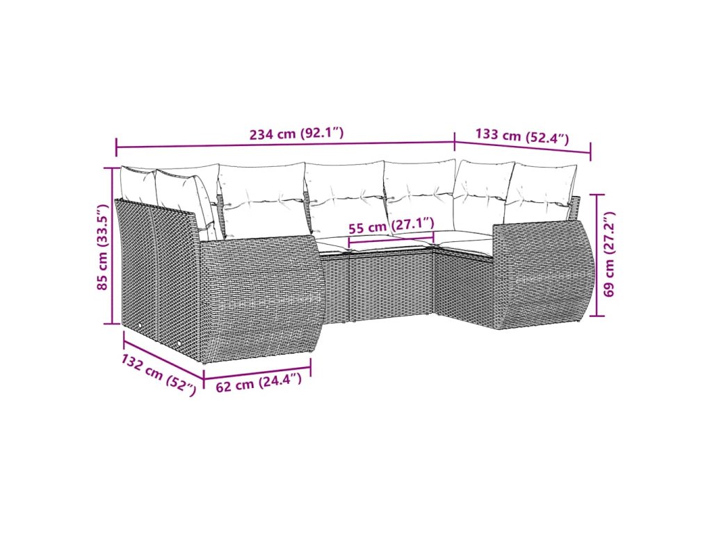 Tato zahradní sedací souprava je dokonalým doplňkem vaší zahrady, terasy nebo dvorku a poskytne vám pohodlné a příjemné místo, kde si můžete povídat s rodinou a přáteli nebo jen tak odpočívat a užívat si pobyt venku.