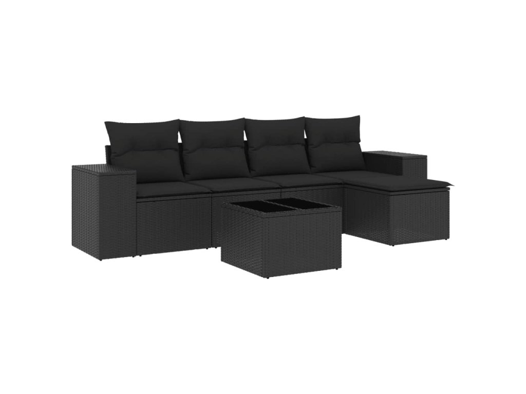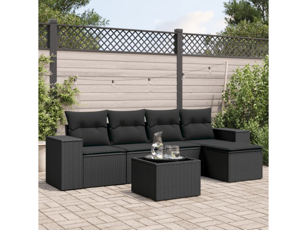 6dílná zahradní sedací souprava s poduškami černá polyratan 3254832