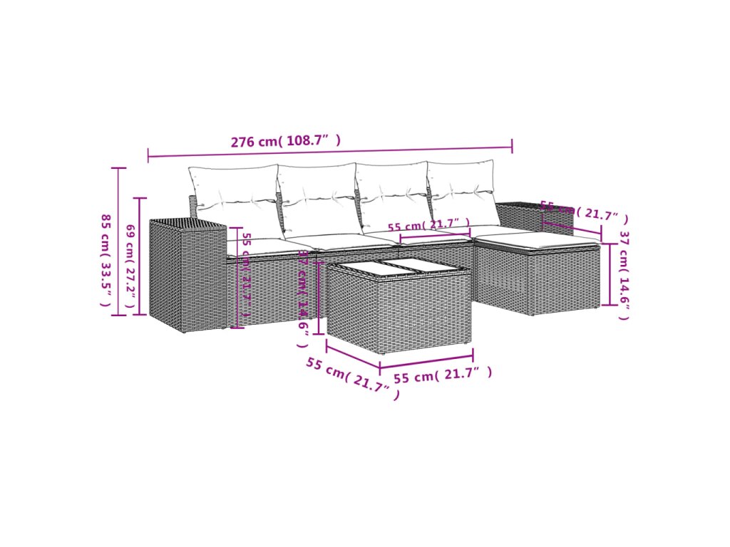 Tato zahradní sedací souprava je dokonalým doplňkem vaší zahrady, terasy nebo dvorku a poskytne vám pohodlné a příjemné místo, kde si můžete povídat s rodinou a přáteli nebo jen tak odpočívat a užívat si pobyt venku.