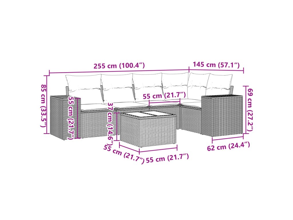 Tato zahradní sedací souprava je dokonalým doplňkem vaší zahrady, terasy nebo dvorku a poskytne vám pohodlné a příjemné místo, kde si můžete povídat s rodinou a přáteli nebo jen tak odpočívat a užívat si pobyt venku.