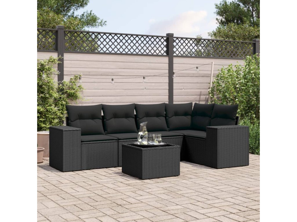 6dílná zahradní sedací souprava s poduškami černá polyratan 3254872