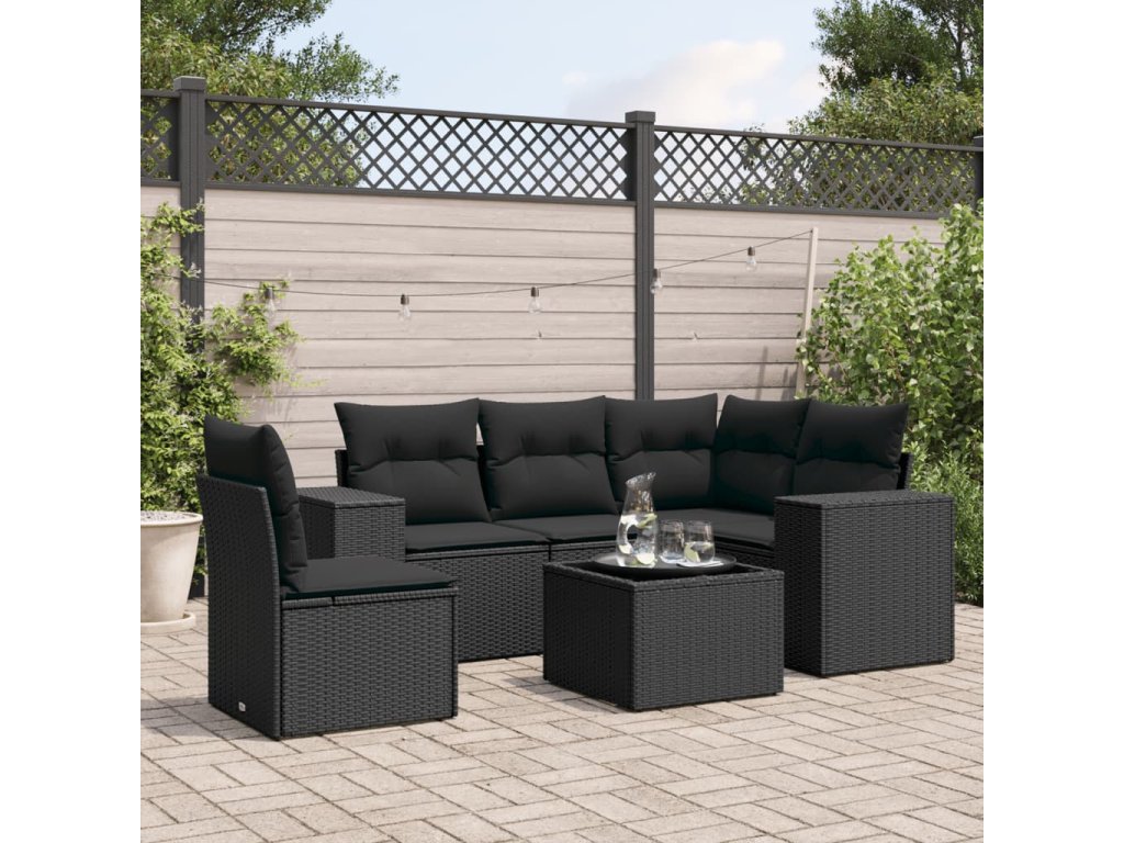 6dílná zahradní sedací souprava s poduškami černá polyratan 3254912