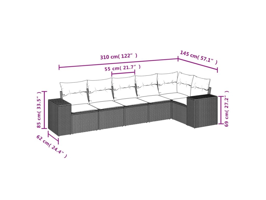 6dílná zahradní sedací souprava s poduškami černá polyratan 3254922