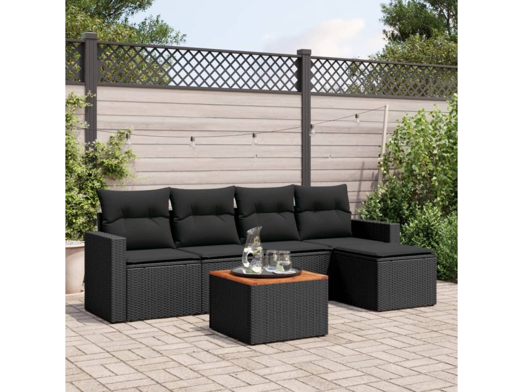 6dílná zahradní sedací souprava s poduškami černá polyratan 3256426