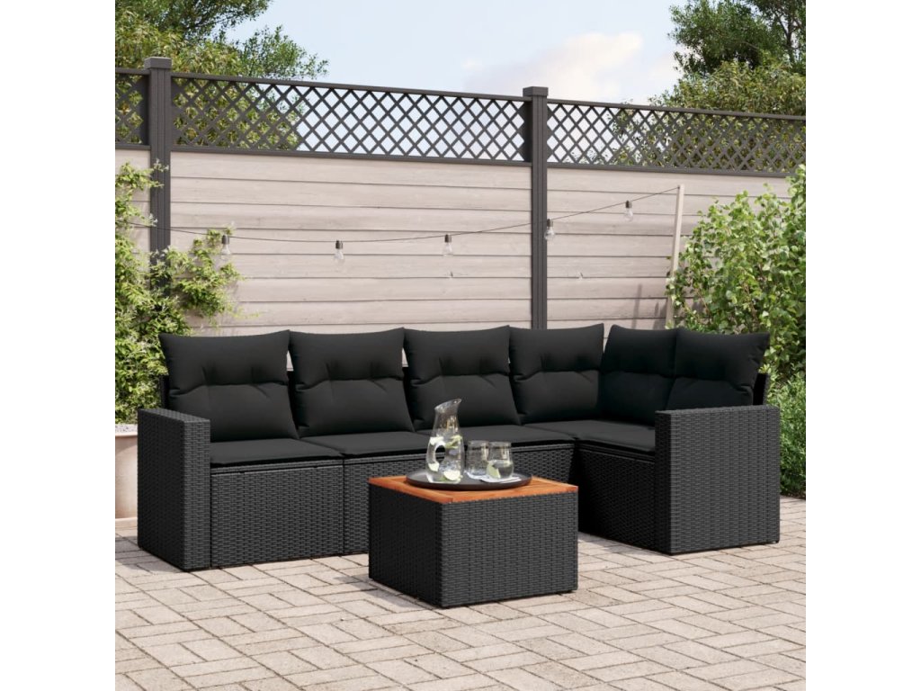 6dílná zahradní sedací souprava s poduškami černá polyratan 3256440