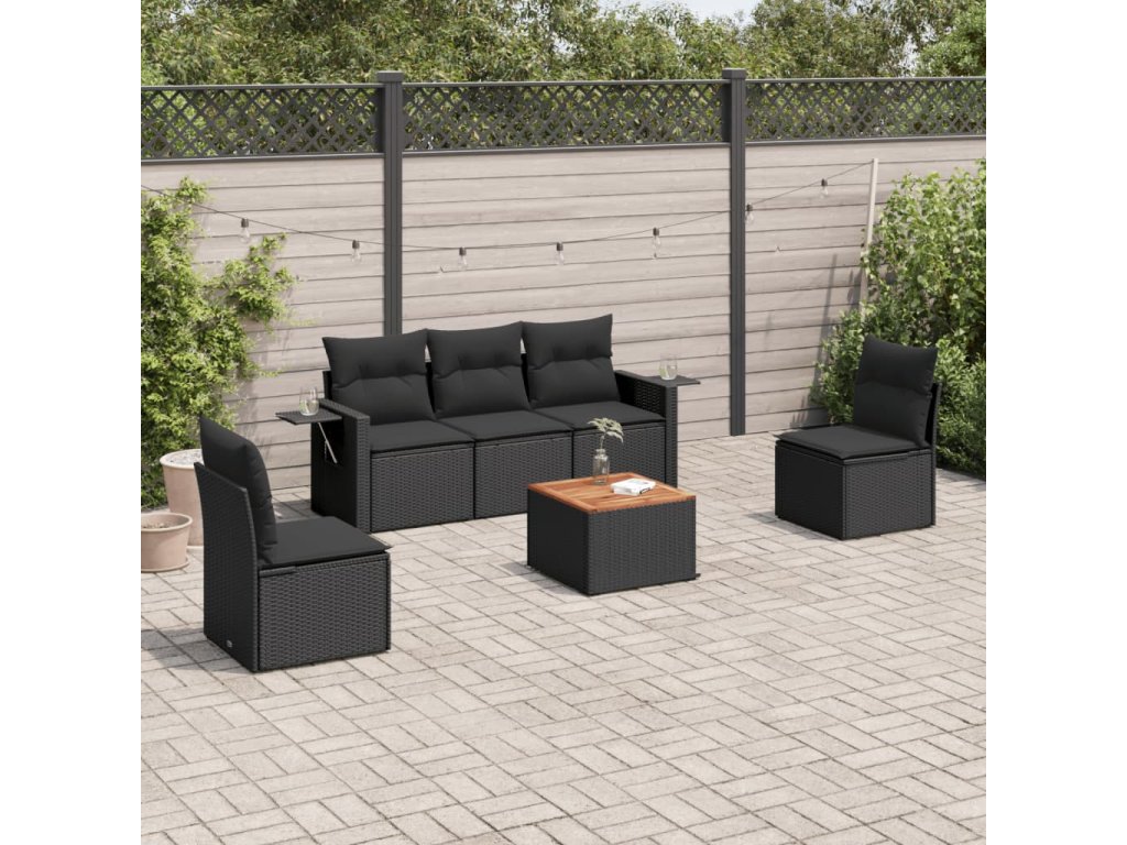 6dílná zahradní sedací souprava s poduškami černá polyratan 3256832