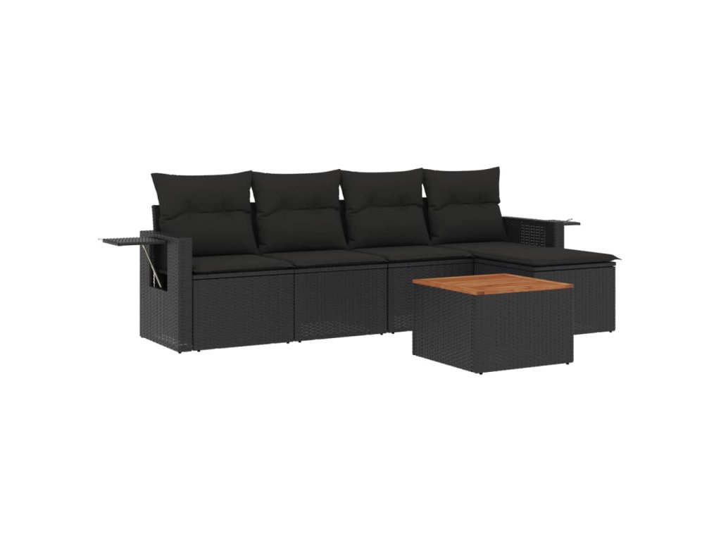 6dílná zahradní sedací souprava s poduškami černá polyratan 3256867