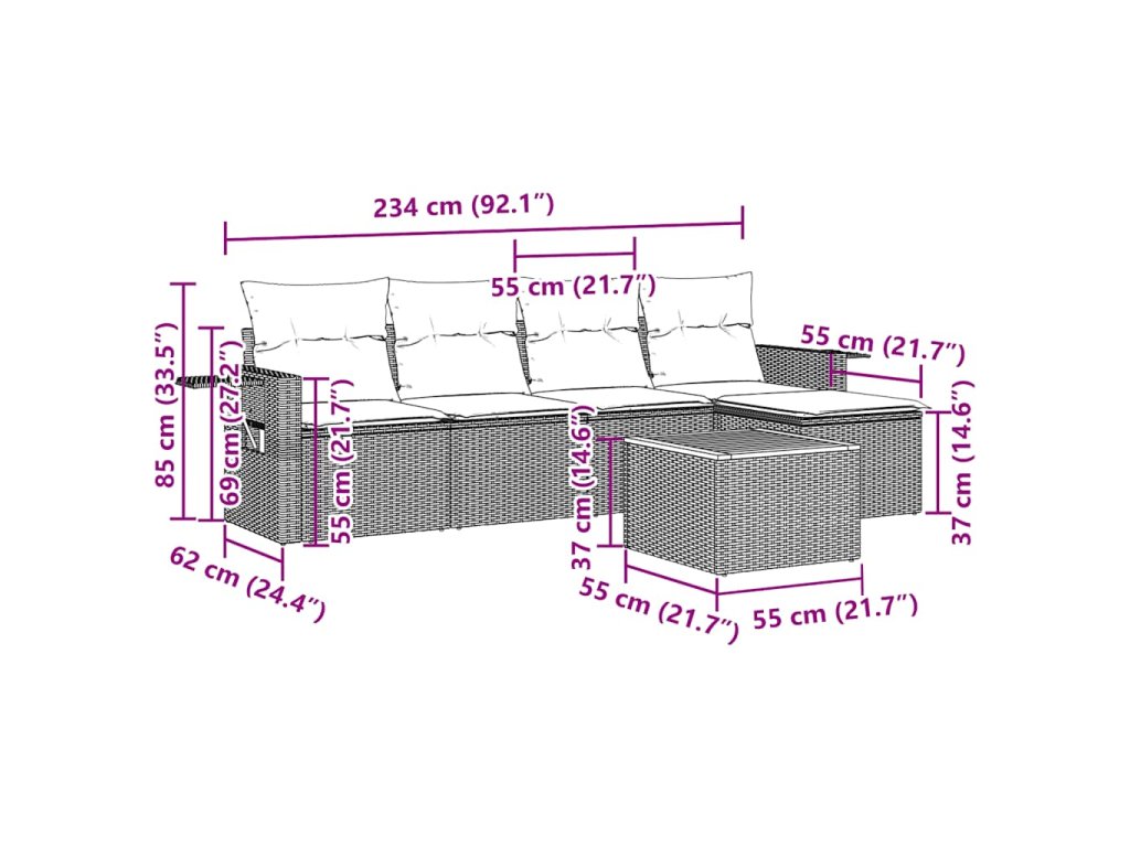 Tato zahradní sedací souprava je dokonalým doplňkem vaší zahrady, terasy nebo dvorku a poskytne vám pohodlné a příjemné místo, kde si můžete povídat s rodinou a přáteli nebo jen tak odpočívat a užívat si pobyt venku.