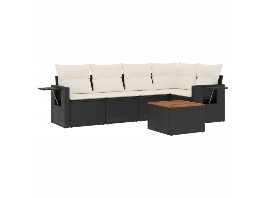 6dílná zahradní sedací souprava s poduškami černá polyratan 3256882