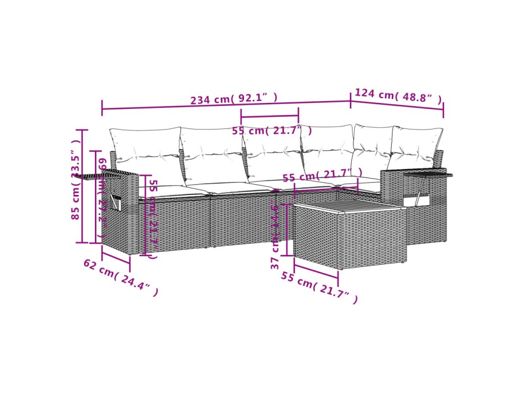 Tato zahradní sedací souprava je dokonalým doplňkem vaší zahrady, terasy nebo dvorku a poskytne vám pohodlné a příjemné místo, kde si můžete povídat s rodinou a přáteli nebo jen tak odpočívat a užívat si pobyt venku.