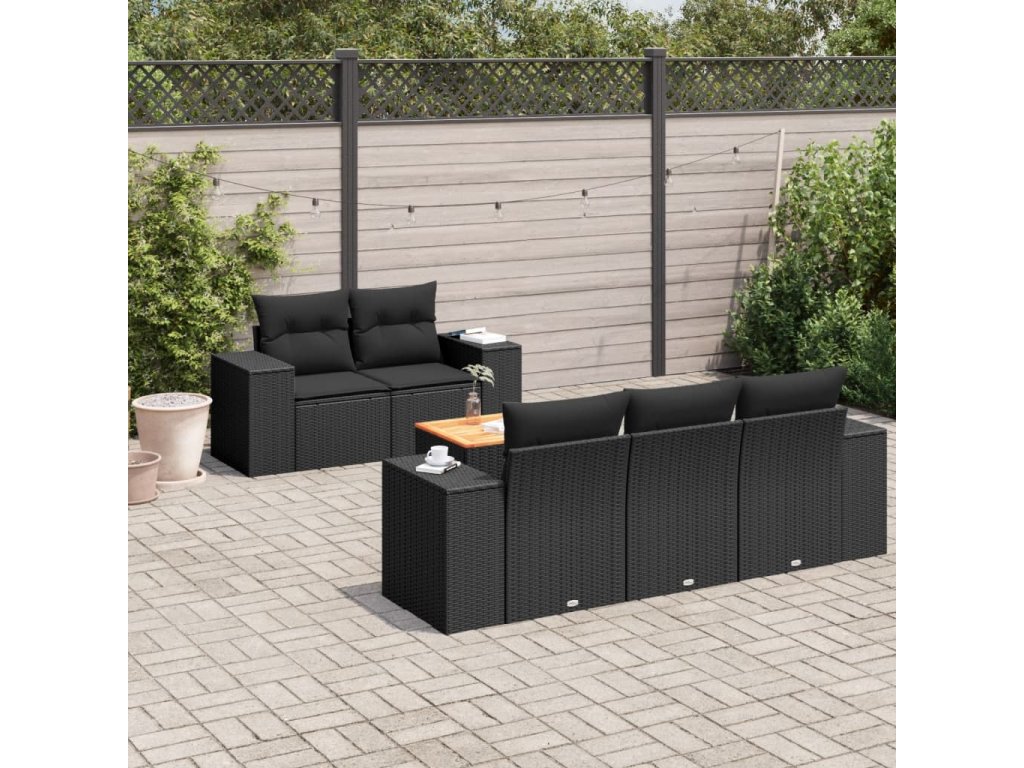 6dílná zahradní sedací souprava s poduškami černá polyratan 3257658