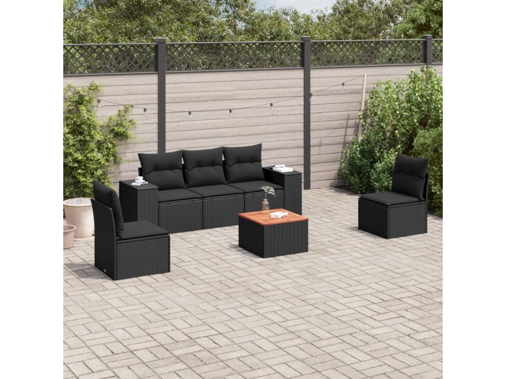 6dílná zahradní sedací souprava s poduškami černá polyratan 3257714